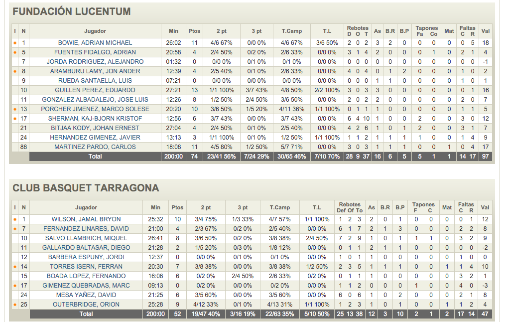 FUNDACIÓN LUCENTUM 74 – CB TARRAGONA 52